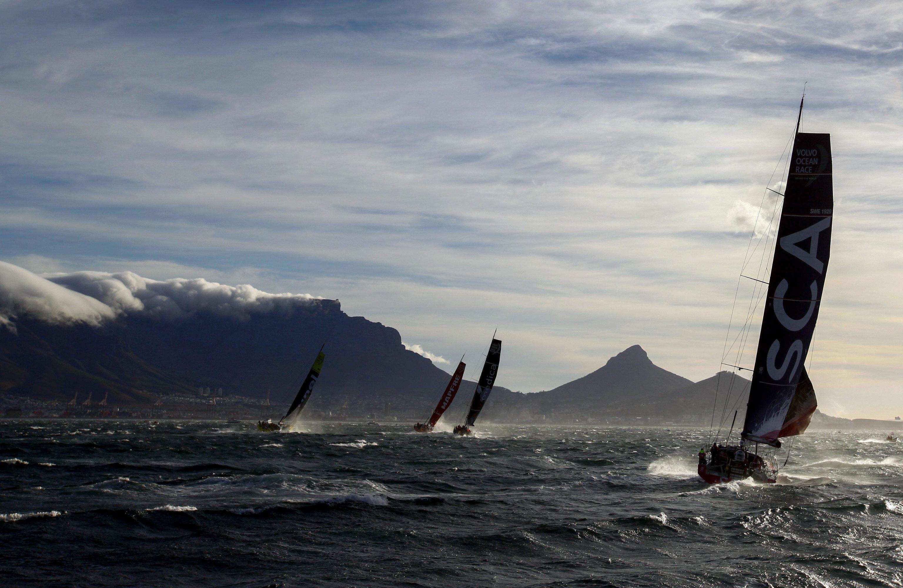 Sin dalle prime battute della seconda tappa, la flotta dei sette Volvo Ocean 65 ha potuto verificare di prima mano quanto li attende per le prime ore della regata, con un vento che ha raggiunto i 35 nodi, in alcuni tratti del percorso costiero, e mare molto formato. In diversi momenti si è trattato di navigare in maniera molto conservativa, per evitare rotture proprio al debutto di una tappa particolarmente delicata. Per la seconda volta, come era già accaduto ad Alicante, è stato il veterano Bouwe Bekking alla ruota di Team Brunel a guidare la flotta fuori dalla Table Bay, al termine di un percorso costiero che ha visto diversi capovolgimenti di fronte, davanti agli spagnoli di MAPFRE e alle veliste di Team SCA, autrici di nuone scelte tattiche.